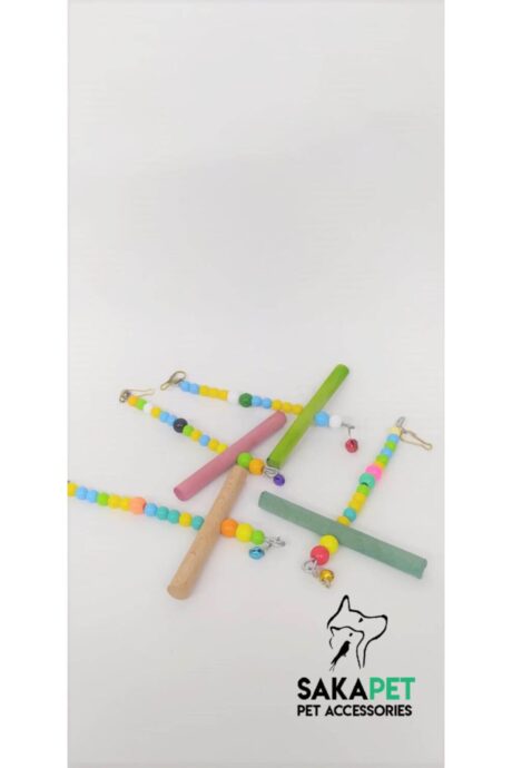 Kafes Teline Asılan Salıncaklı Ahşap Kuş Oyun Alanı – El Yapımı